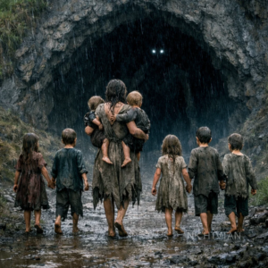 Siete niños, una viuda y una gruta que nadie se atrevía a pisar. La tormenta hacía desaparecer el suelo bajo sus pies, pero lo que esa madre encontró allí dentro la hizo caer de rodillas y llorar como nunca antes. “Si vamos a morir, que sea juntos”, susurró antes de empujar a sus hijos hacia la oscuridad.